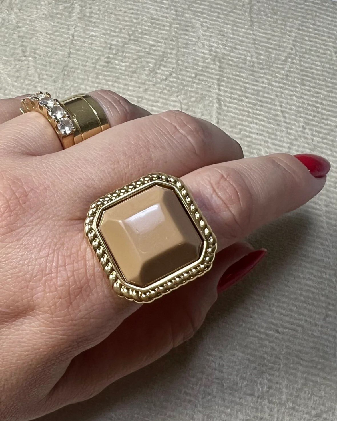 O anel sofia é extremamente versátil, combinando perfeitamente com tanto eventos formais quanto casuais. Sua cor neutra e design moderno fazem dele um acessório imprescindível no porta-jóias.