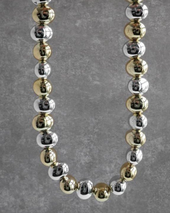 O colar ABS em banho misto é uma peça marcante que combina elegância com design moderno. Perfeito para qualquer ocasião, este colar adiciona um toque de sofisticação ao vestuário casual e formal.