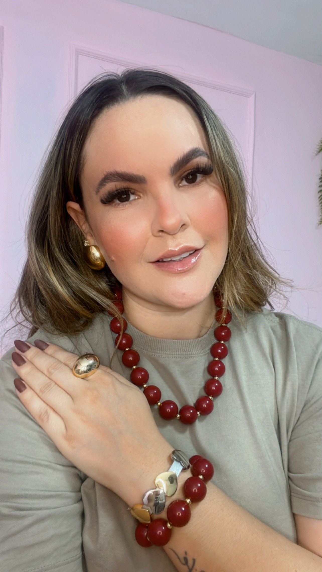 Colar de Bola Resina Cherry – Não acompanha brincos e pulseira