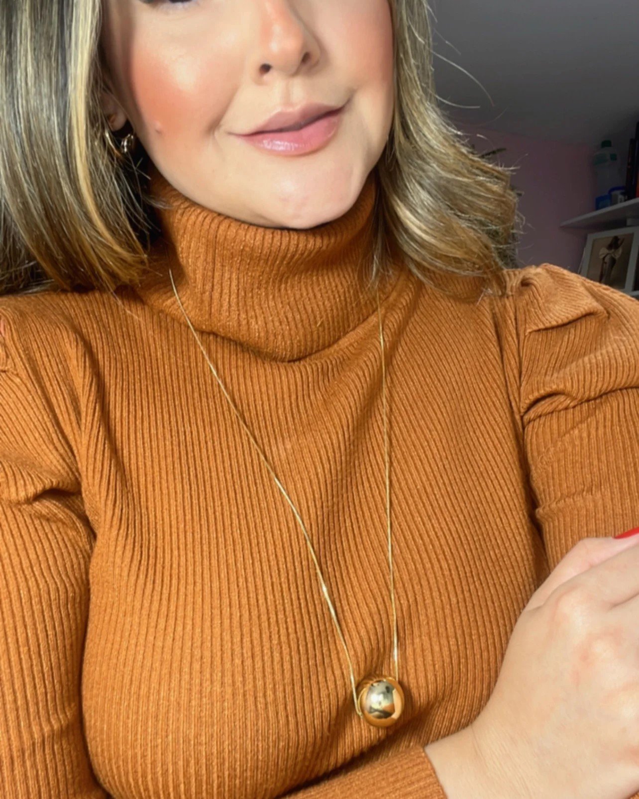 O colar esfera dourado é uma peça sofisticada que adiciona um toque de elegância a qualquer look. Seu design minimalista é perfeito para diversas ocasiões, seja no dia a dia ou em eventos mais formais.
